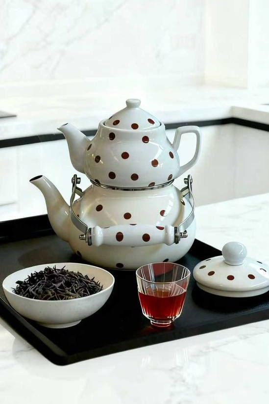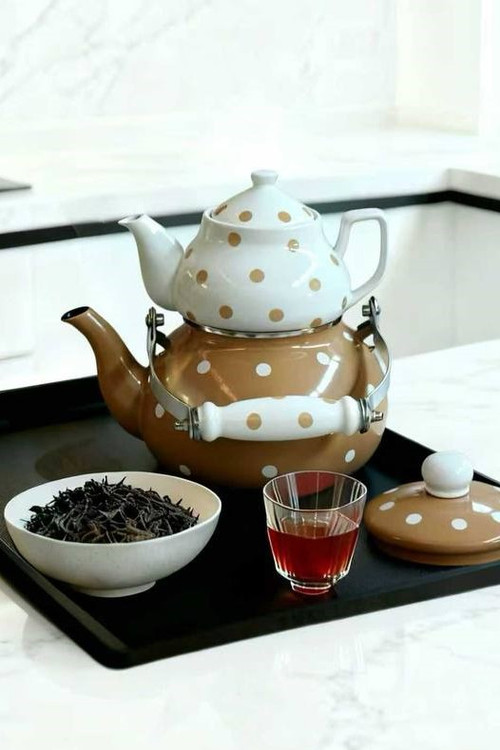 کتری قوری لعابی خالدار میس بتی Miss Betty یک محصول وارداتی با طراحی کلاسیک و چشمنواز است. ظرفیت ۲.۸ لیتری کتری، آن را برای مصرف روزانه ایدهآل کرده و قوری چینی باکیفیت، طعم طبیعی نوشیدنی را حفظ میکند. پوشش لعابی مقاوم در برابر حرارت و زنگزدگی بوده و این محصول انتخابی مناسب برای خرید کتری قوری زیبا، بادوام و کاربردی برای آشپزخانه است.