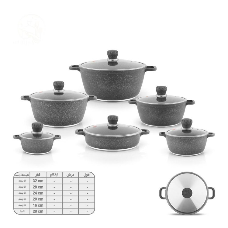 سایز های قابلمه: ۱۶، ۲۰، ۲۴، ۲۸، ۳۲