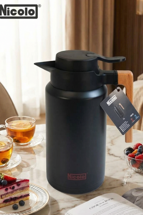 فلاسک استیل 2 لیتر دسته بامبو مشکی نیکولو Nicolo